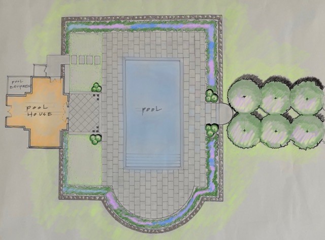 3. Program elements, pool, firepit walls, stairs, patios, plant beds etc.